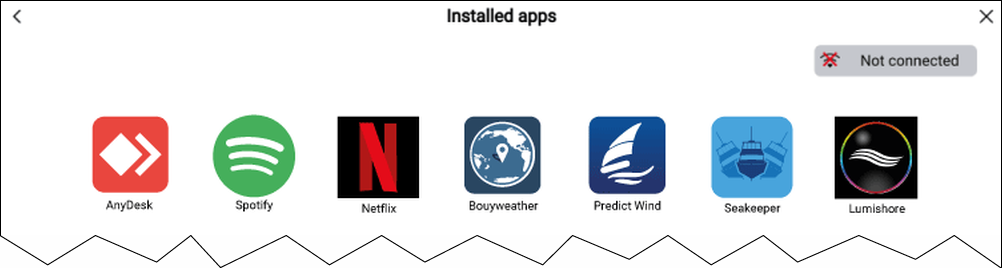 The LightHouse™ operating system also enables partner organizations to integrate the user interface of their hardware so it can be accessed using the MFD. When compatible partner hardware is detected, icons can be displayed on the Homescreen and in the App launcher.
