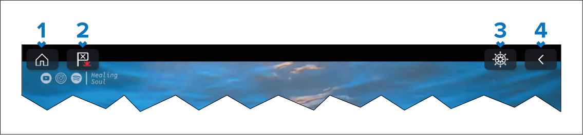 Waypoint/MoB icon — Select to place a waypoint at the vessel’s current location. Alternatively, a long touch of the Waypoint/MoB icon onscreen triggers the MoB alarm.