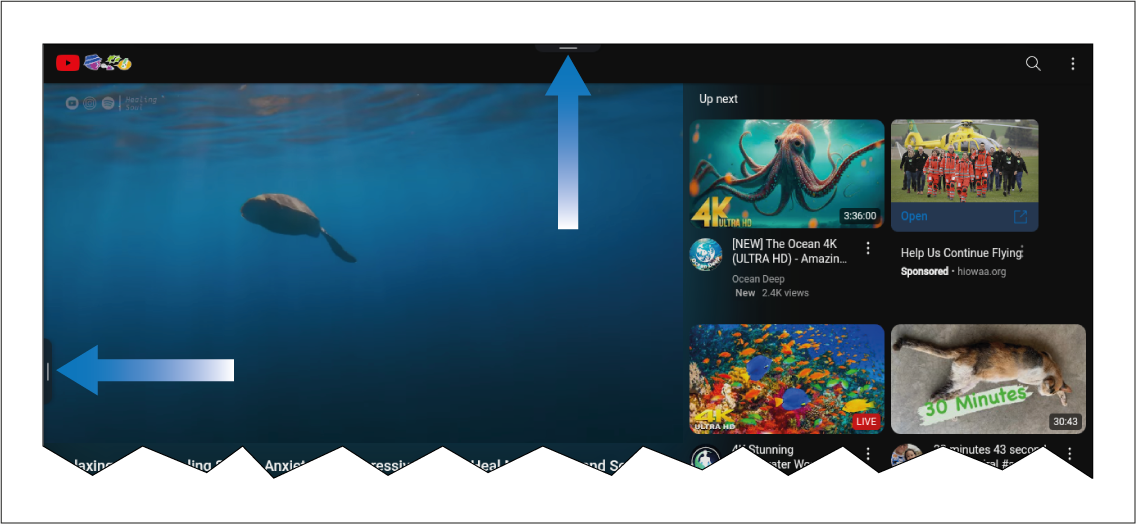 The MFD controls are automatically hidden when using the YouTube and YouTube TV apps.