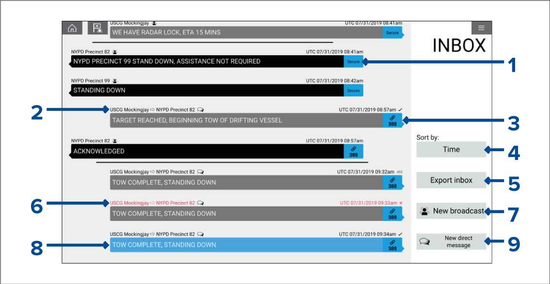 MessagesNew direct messageNew direct message — Select to send a direct message to a specific responder vessel.