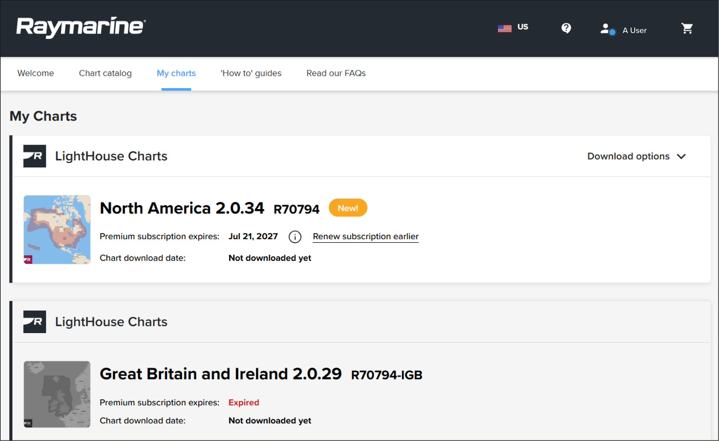 Purchased charts will appear in the My charts area of the chart store, once the voucher code has been entered.