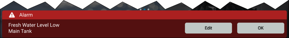 An alarm is displayed when the display receives an alert from a digital switching system such as YachtSense DCS or Trigentic.