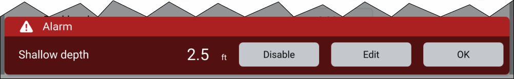The Shallow depth alarm is triggered when the display detects that the depth reading from the depth transducer is shallower than the Shallow depth alarm threshold set in the Alarm manager.