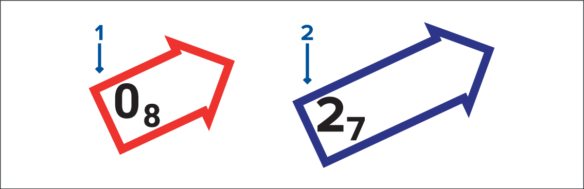 Current speed is shown inside the arrow. Current speed is displayed in user-selected speed units, with decimals displayed in subscript. Decimals are not shown for values of 10 or greater.