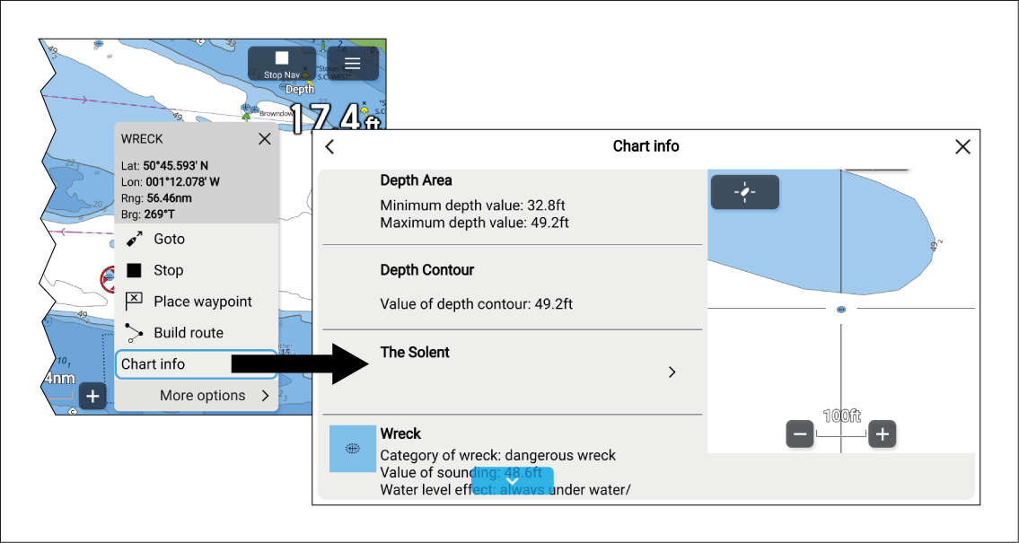More detailed chart information can be viewed by selecting Chart info from the context menu. The detailed information can be viewed regardless of whether the Chart info boxes setting is enabled or disabled.