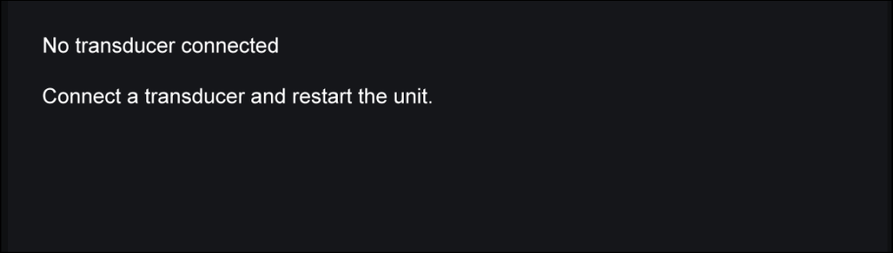 Check your transducer connection(s) are correct and free from damage, then power cycle your system. If the transducer is still not found then refer to your equipment’s installation documentation for further troubleshooting information.