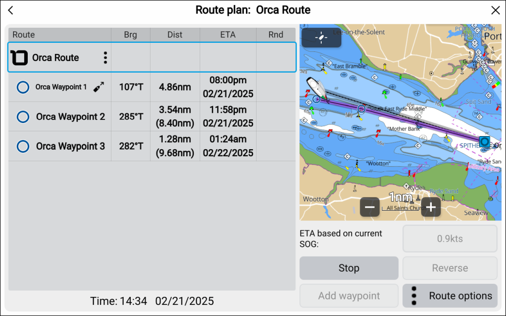 The Orca route can be followed from the MFD / chartplotter in the same way as a route that was created on the chartplotter.