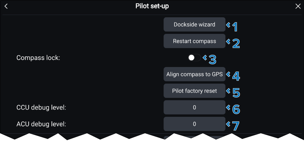 Autopilot calibration settings can be accessed from the Pilot set-up settings menu.