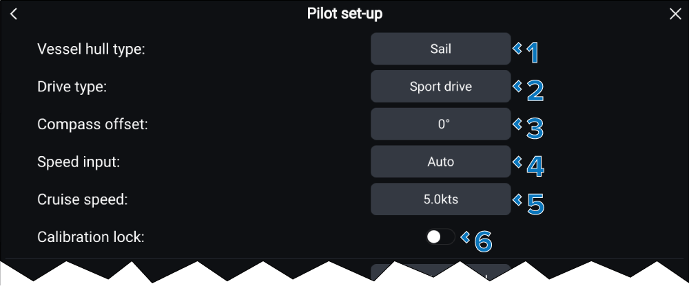 Configuration settings for your autopilot can be accessed from the Pilot set-up settings menu.
