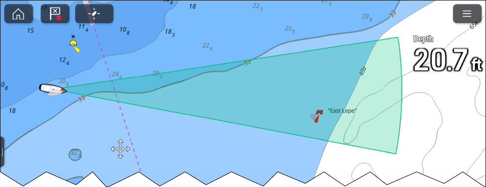 You can specify this range limit using the onscreen Range button in the Video app or from the ClearCruise settings menu. . Any adjustments you make will be reflected in the Chart app’s FOV cone.