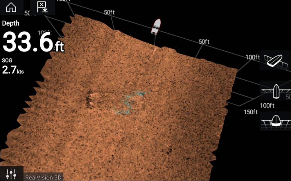 In some circumstances, it is beneficial to disable RealVision AHRS if local sources of magnetic interference are distorting the sonar image. RealVision AHRS can be disabled from Settings.