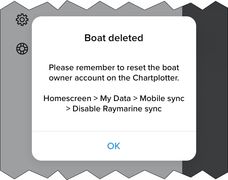 A boat system can be deleted from the Raymarine app following