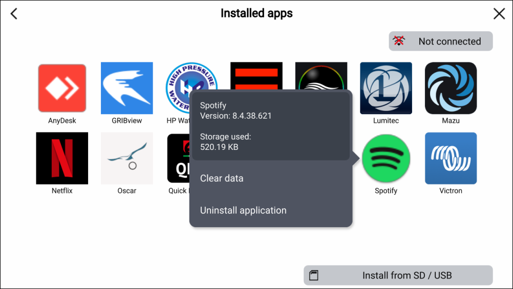 Android apk apps which are no longer required can be removed (uninstalled) from your MFD.
