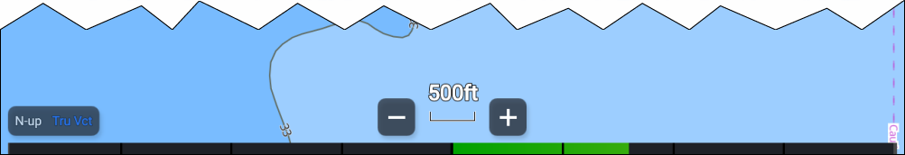 The rudder bar indicator is used to show a graphical representation of rudder angle that can be displayed at the bottom of the screen in the chart app. The rudder bar indicator is available in Navigate, Racing, Anchor and Fishing chart modes.