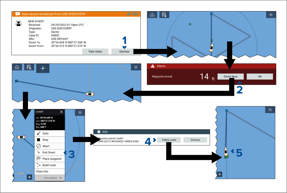 - When the “Divert From here” marker is reached, select Divert now from the waypoint arrival notification.