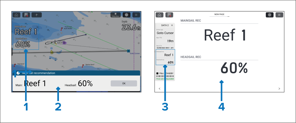 Sail recommendation — dual data item (only available in the Dashboard app).