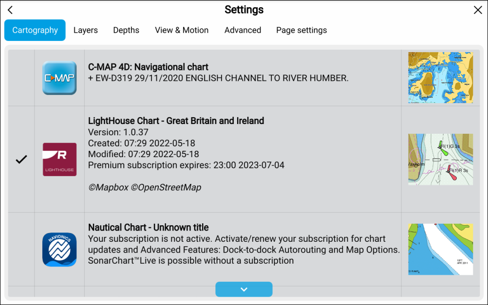 The menu will automatically close and the chart app will refresh to display your selected cartography.