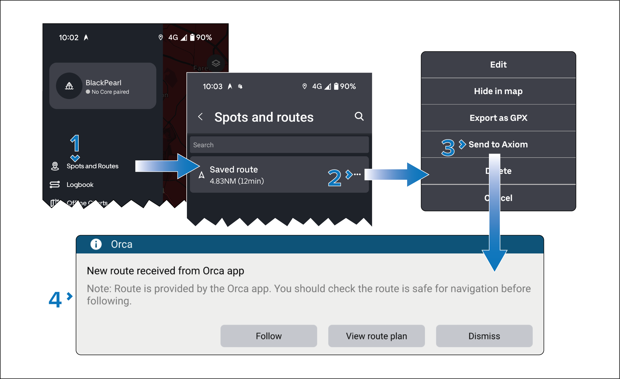 A route that has been created in the Orca app can