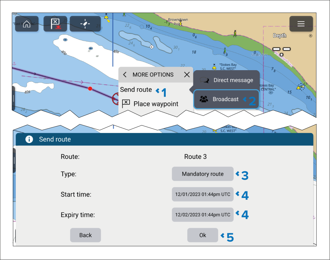 - Select Send route from either the Route context menu or from the Route list pop-over menu.