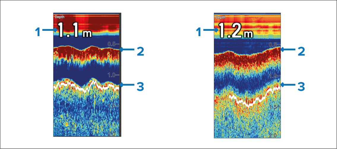 Accurate bottom tracking can be unreliable in depths shallower than 0.8 m/2.62 ft. When operating at or below this depth be cautious of misleading sonar returns, false bottom tracking and incorrect depth readings