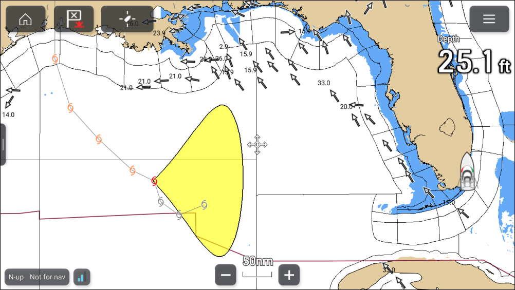 Weather mode Wind fieldsWind RadiiSurface wind fields (wind radii) are shown using colored shape representing the wind field area and speed.