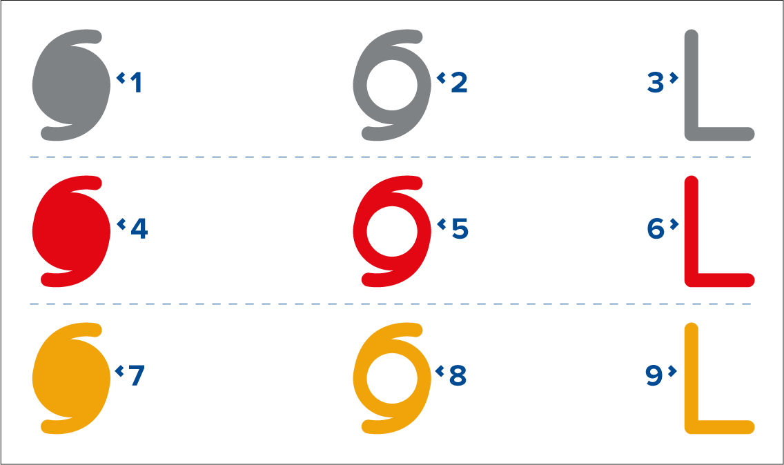 3, 6 and 9 represent a tropical disturbance, tropical depression.