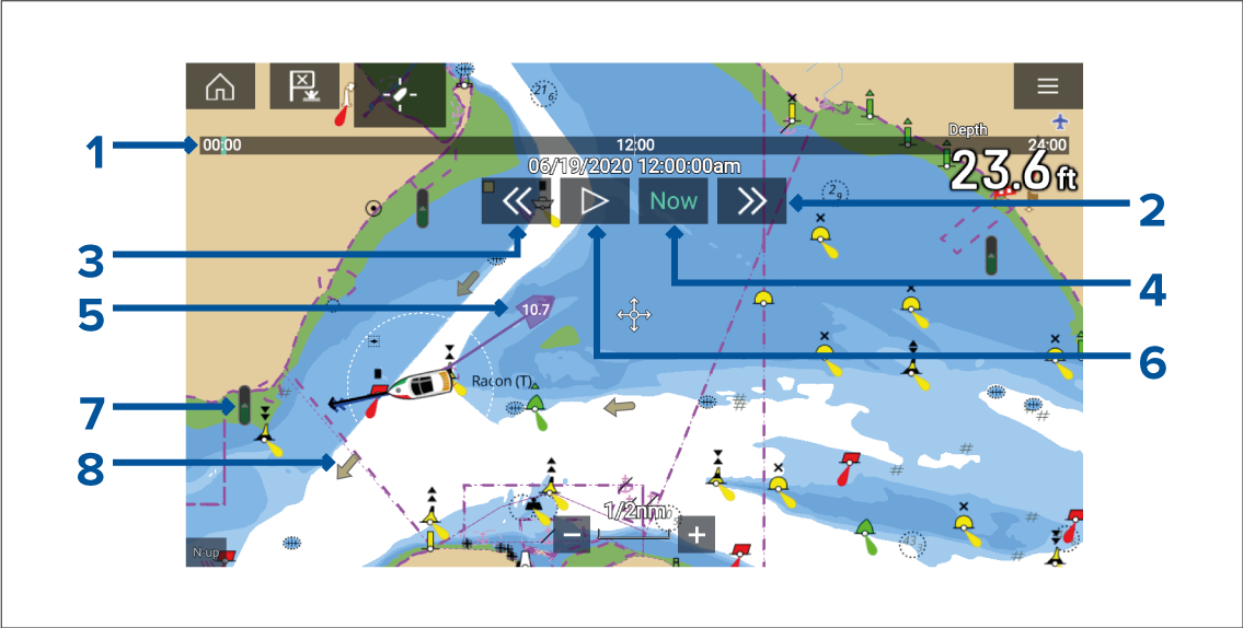 ChartTide animationCurrent animationAnimation progress bar — The progress bar is Blue for the current 24 hour period, or Green when playing animations from a different day.
