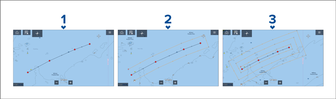 The search pattern can also be configured to traverse the route more than twice, enabling a greater area to be searched on either side of the intended route.