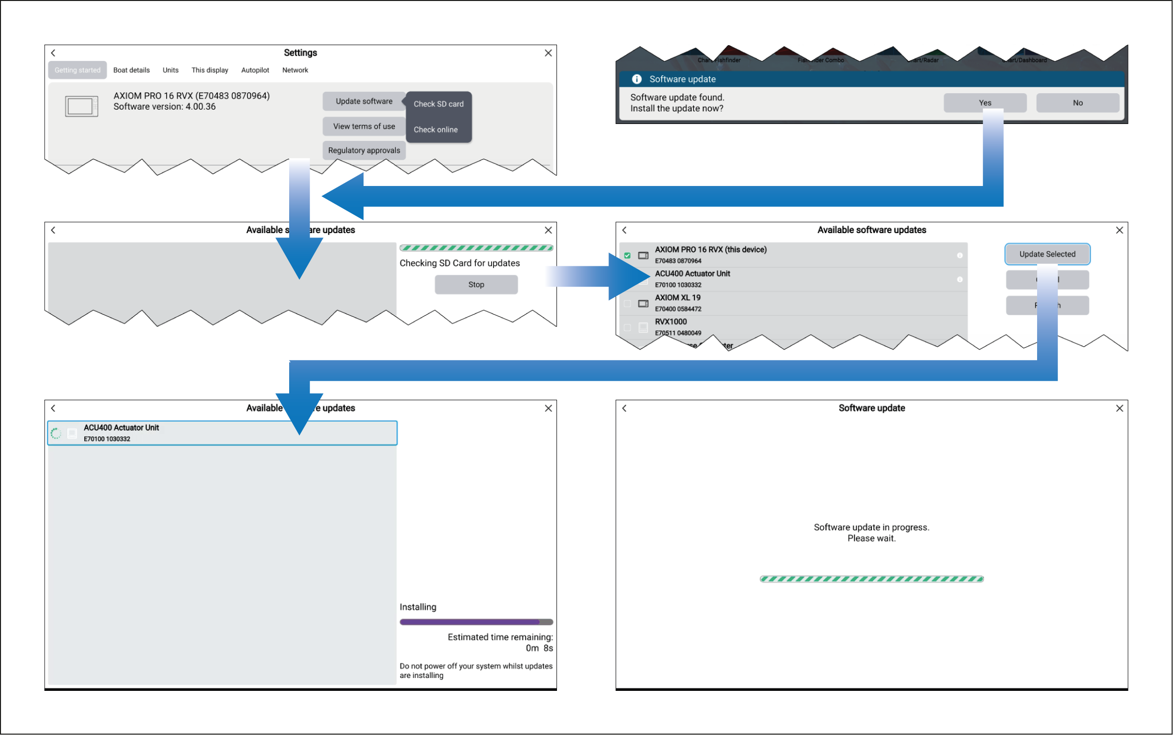 Networked chartplotters will show the software update