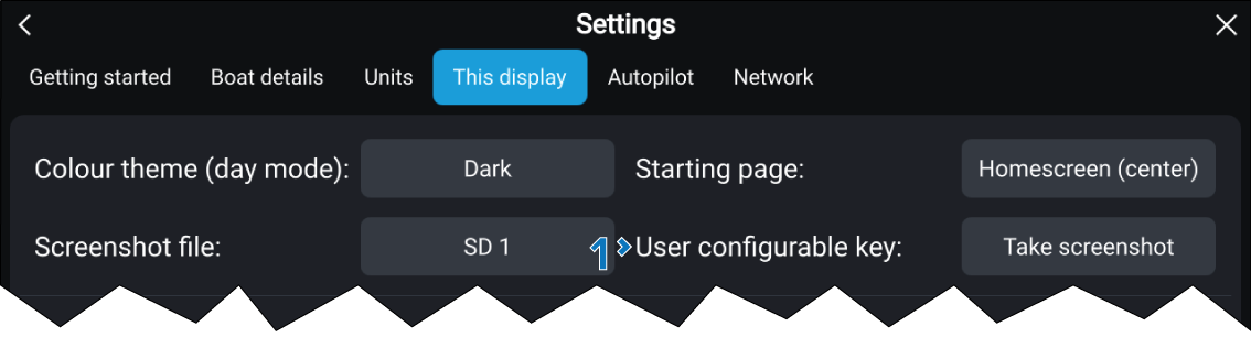 The User configurable key setting is provided in the This display settings menu. This setting is only available on Axiom Pro chartplotters.