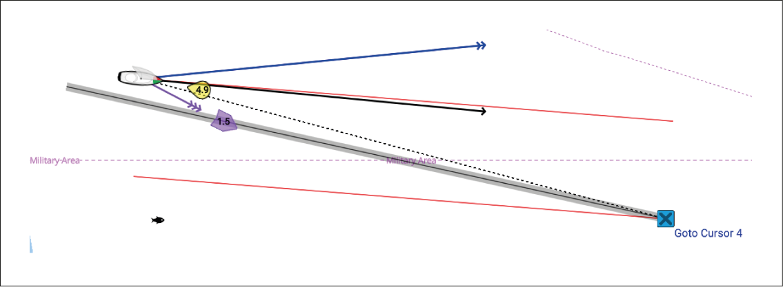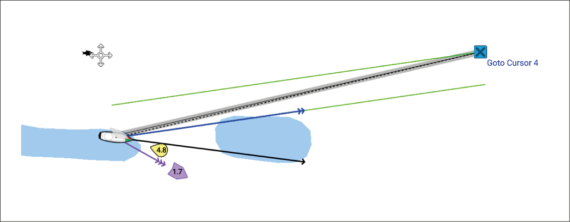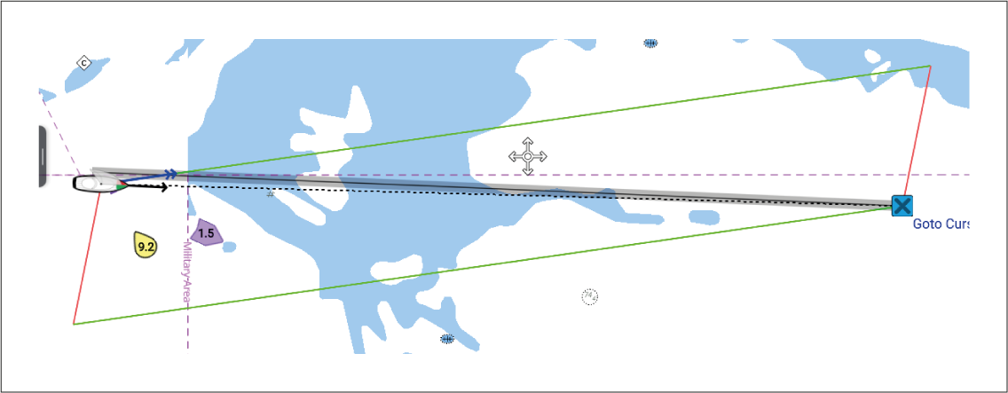 This layline pair creates a corridor within which the boat can sail directly to the waypoint.