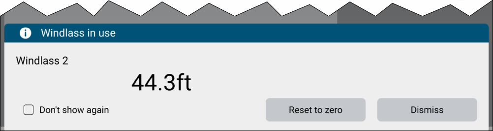 Enable the Show alert when windlass operated toggle switch to receive a notification each time Windlass operation is detected. This notification will also include the current Rode value.