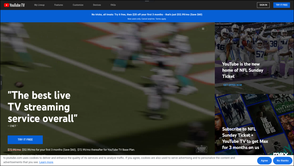 YouTube TV requires an internet connection and an active subscription to YouTube TV.