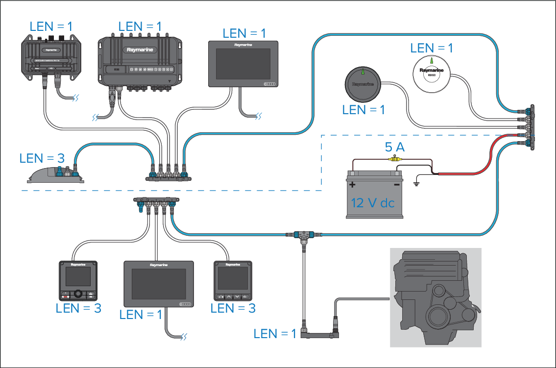 In the example above, the system has an overall LEN of 16, so the optimum connection point would be to have a loading of 8 LEN either side of the connection point.