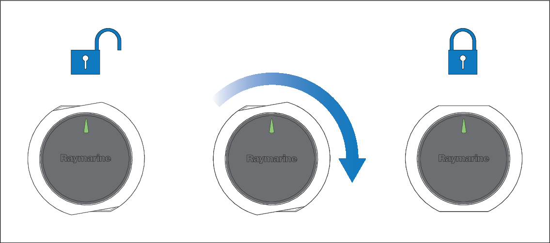 underside of the unit. Secure the SeaTalk NG cable by rotating the locking collar clockwise 2 clicks.