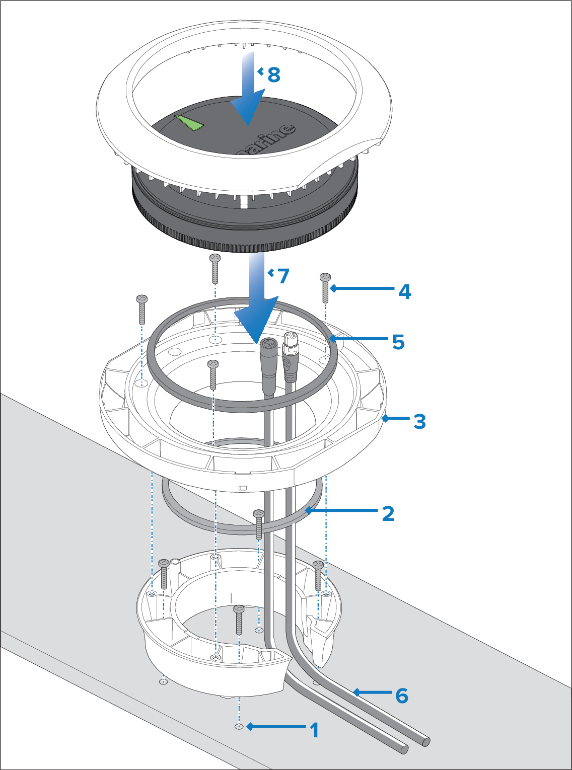 in the mounting surface. Secure the riser to the mounting surface