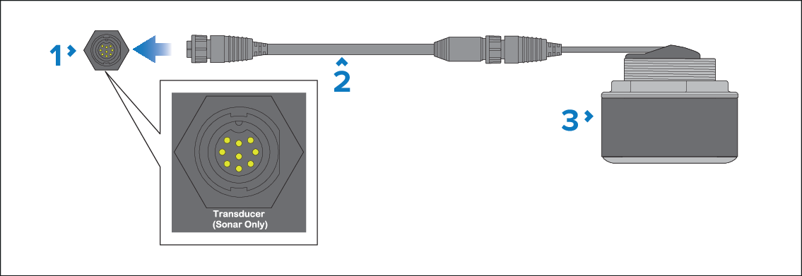 Traditional transducers can be connected to an Axiom DV display’s Transducer (Sonar Only) connection using the DV 9-pin to CP370 8-pin adaptor cable (part number: A80485).