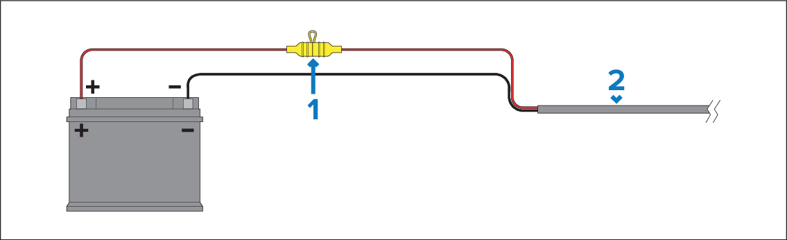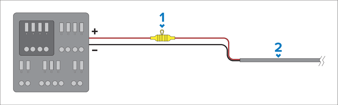 Waterproof fuse holder containing a suitably-rated inline fuse must be fitted. For suitable fuse rating, refer to: Inline fuse and thermal breaker ratings. |