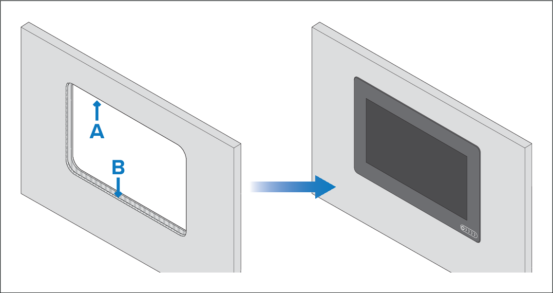 Flush mounting requires the same cut out hole as surface mounting and an additional rebate around the edge of the cut out. When the display is flush mounted, the glass will be flush with the mounting surface.