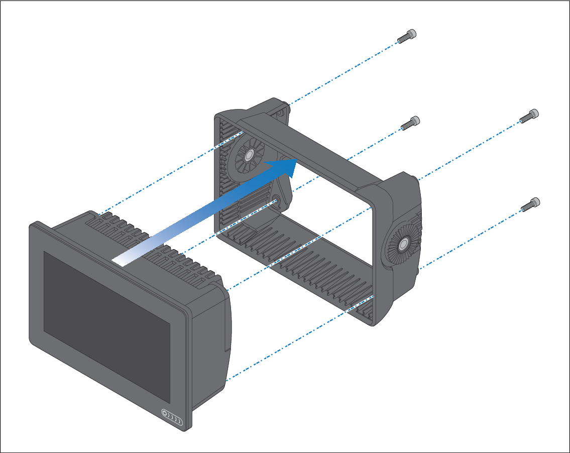Before attempting to flush or surface mount an Axiom+ 7 display, the pre-fitted trunnion adaptor must first be removed from the rear of the unit.
