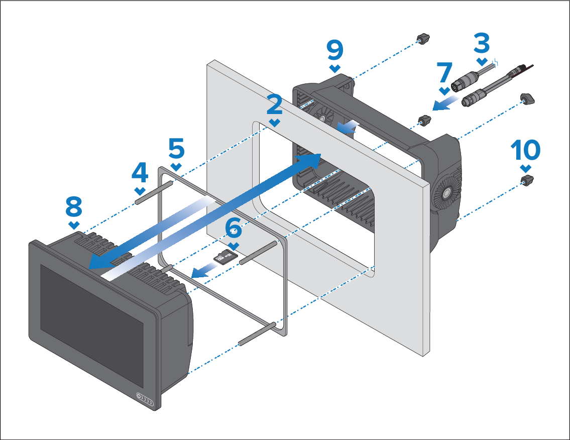 - Route the relevant cables to behind the mounting surface