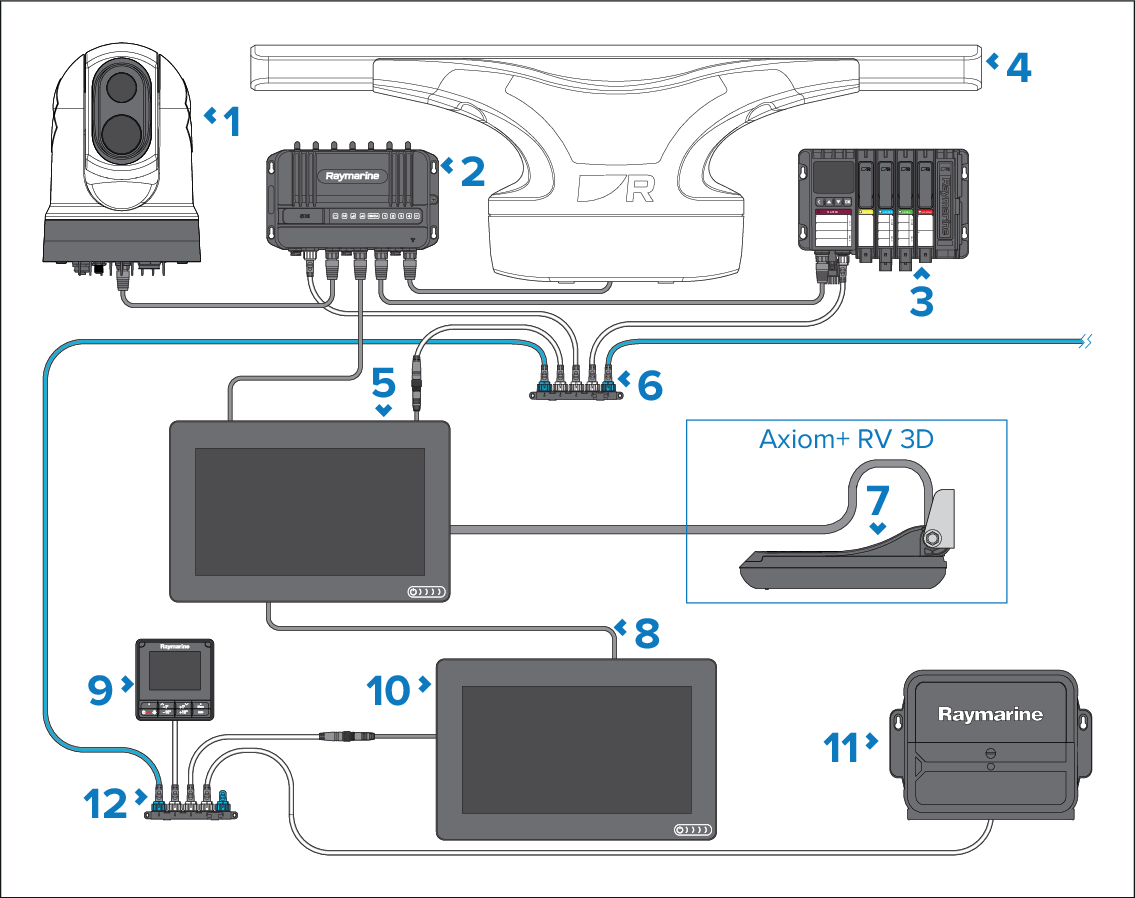 Only the Datamaster MFD/Chartplotter requires a connection to the NMEA 2000/SeaTalk NG network. Other MFDs/Chartplotters can be connected for data redundancy; however only the Datamaster MFD/Chartplotter will receive data from NMEA 2000/SeaTalk NG devices. The Datamaster MFD/Chartplotter can bridge the data over the RayNet (Ethernet) network to other MFDs/Chartplotters in the system.