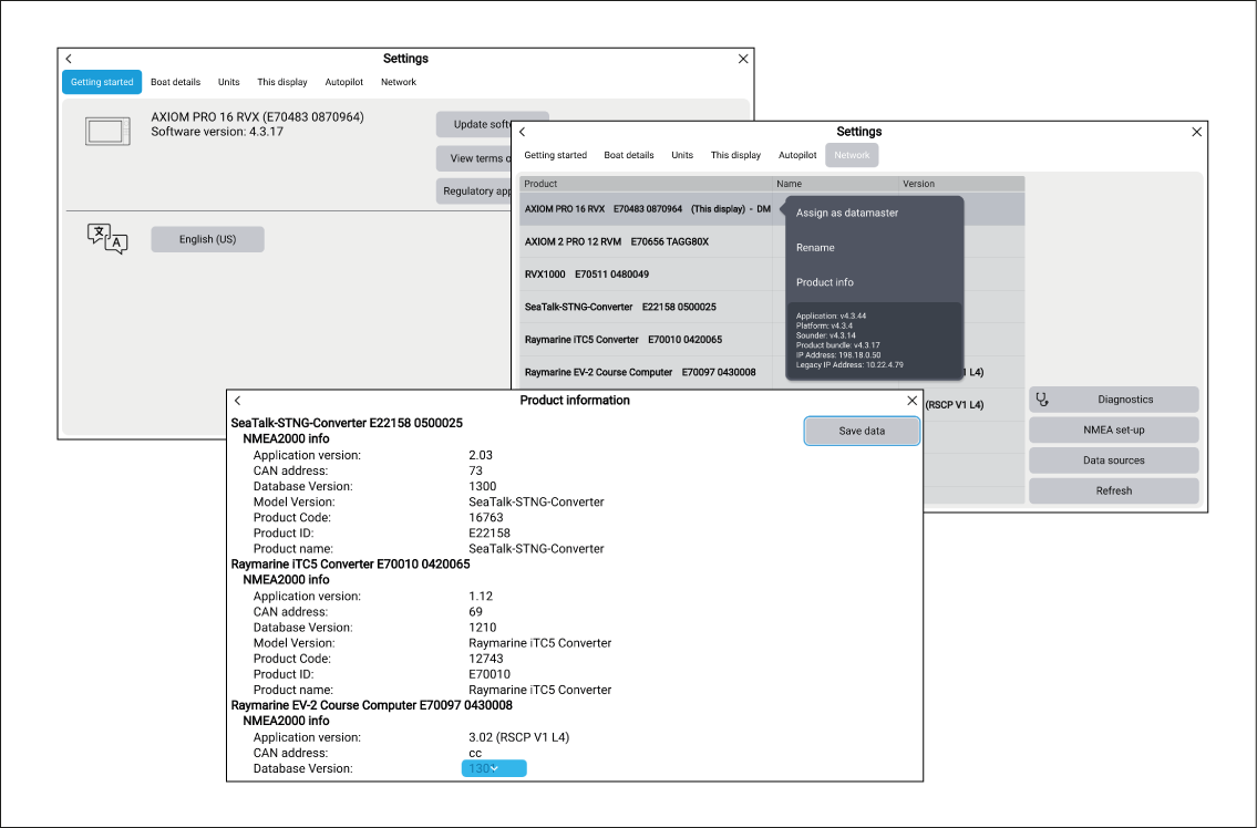 view information about products networked using SeaTalk HS and SeaTalk NG / NMEA 2000, by selecting the Network tab, then:
