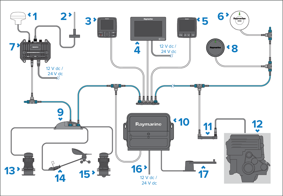 Depending on engine type, it may be possible to connect the engine system directly to the SeaTalk NG backbone using a SeaTalk NG to DeviceNet adaptor cable. However the data available will be restricted to supported, standard NMEA 2000 data only.