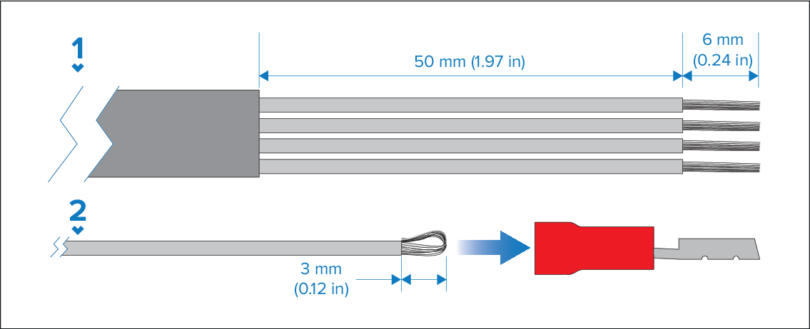 - Prepare the cable as shown in 1 above.