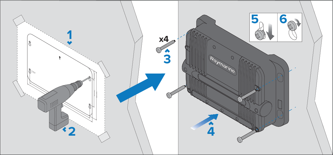 - Drill 4 holes at the marked location on the template, and then remove the mounting template.