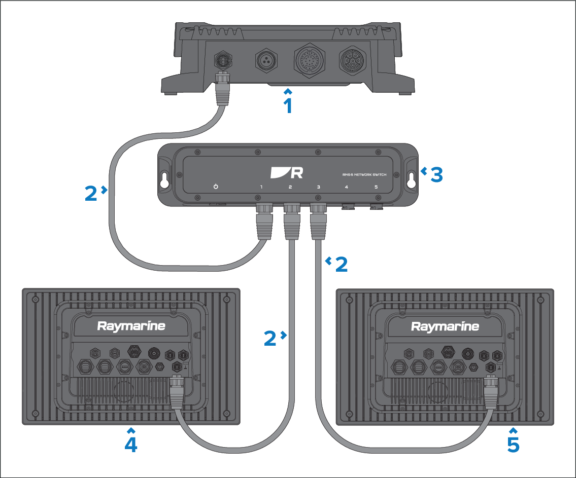 The sonar module may be used with multiple Raymarine MFDs / chartplotters, via a network switch and RayNet network cables. The sonar image can then be shared between multiple displays on the same network (providing that all displays are running compatible software).