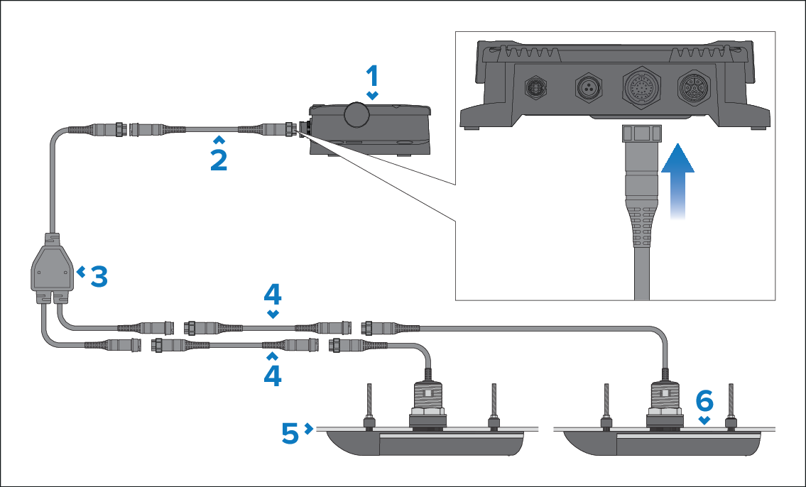 ConnectionExtension cablesOptional extension cables can be fitted between the transducer and ‘Y’ cable if required, or between supplied extension cable and MFD or sonar module.