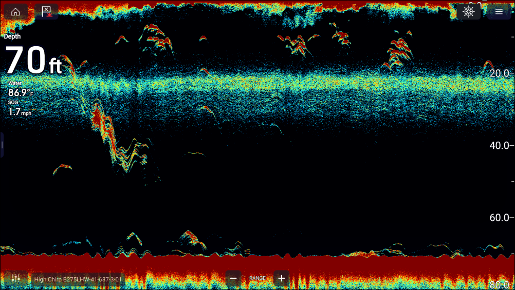 Generally, lower transducer frequencies are better for showing thermoclines.