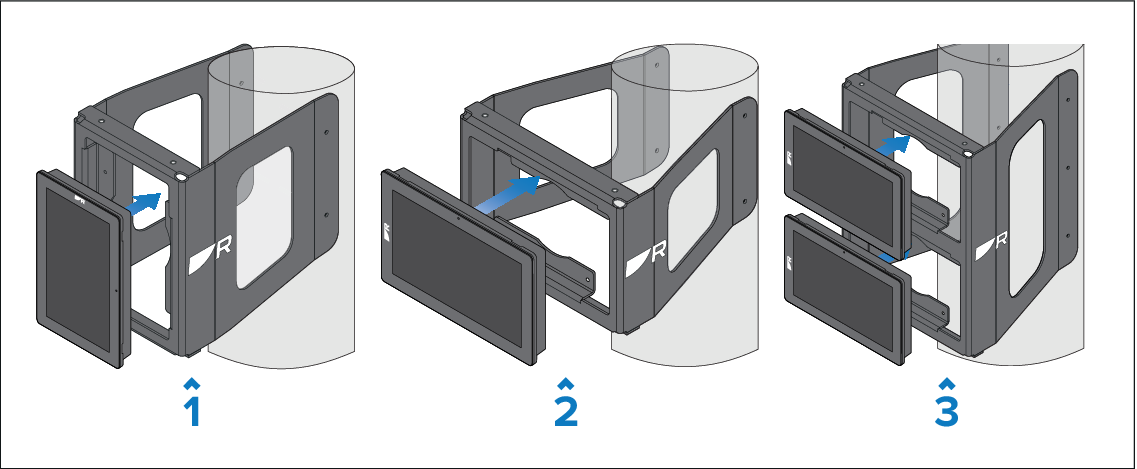 The performance display can also be mounted to a mast using one of the separately available mast bracket accessories.